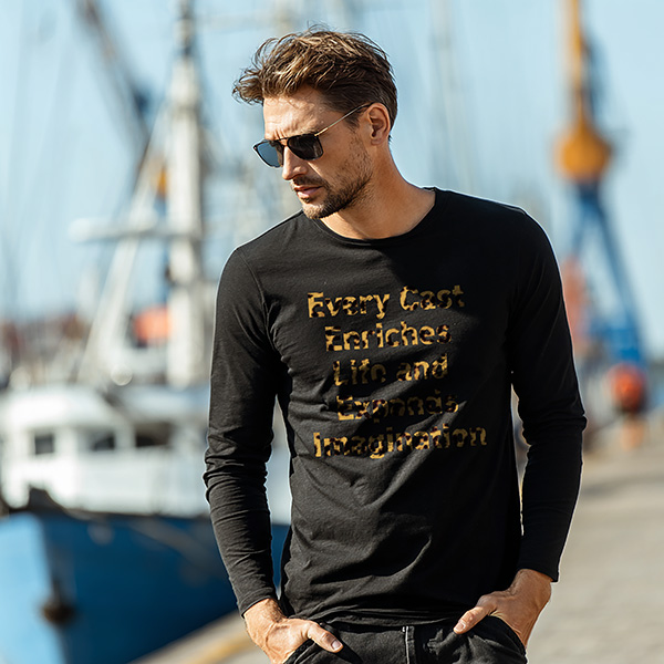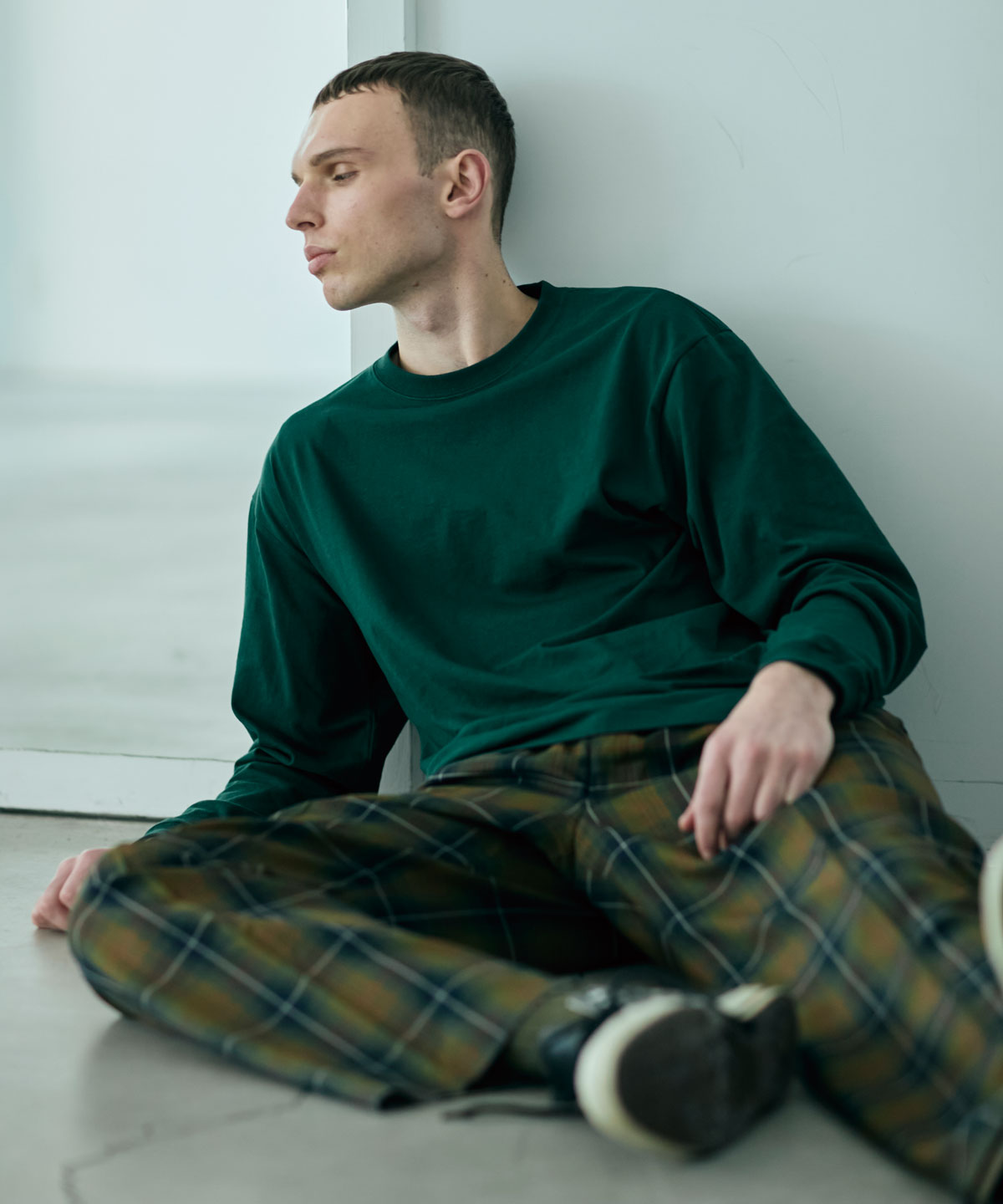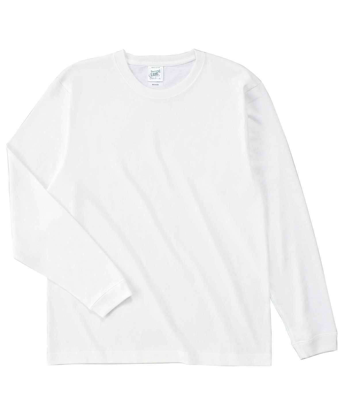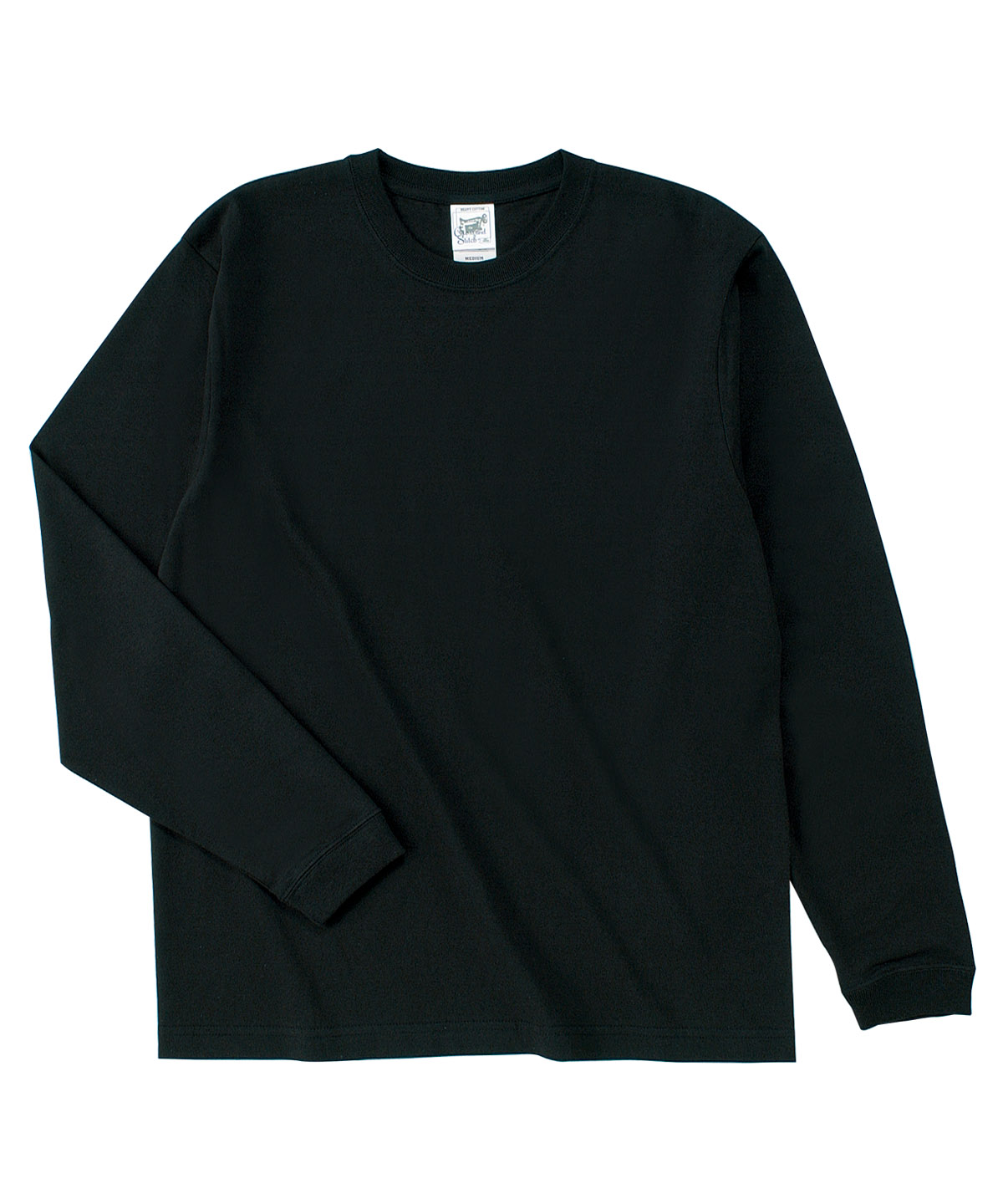 オープンエンド生地のリブ有りロングスリーブTシャツ。
